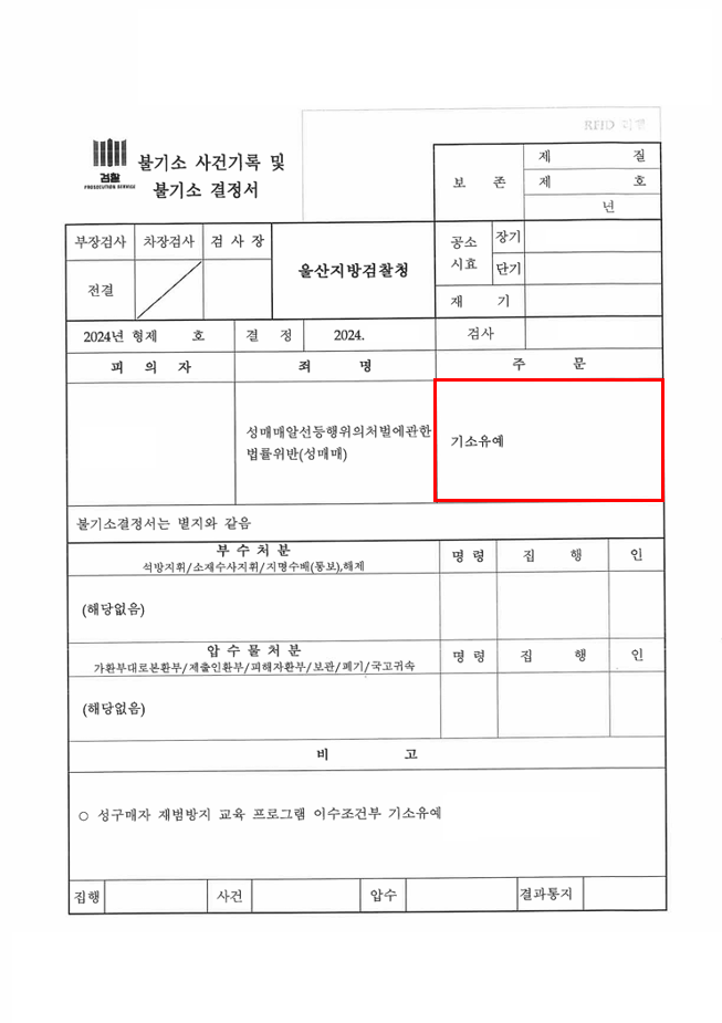 예상한 바와 같이 사건이 빠르게 검찰로 송치되었기에 검찰 송치를 확인한 즉시 피의자는 성매매에 대한 모든 피의 사실을 인정하며