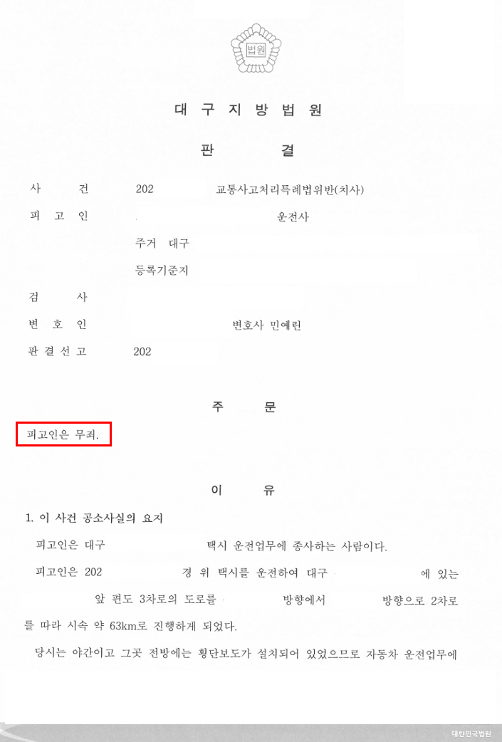 본 사건의 의뢰인은 택시 기사로 생업에 종사하고 있었기에 운전 시 고도의 주의 의무가 요구됨에도 불구하고