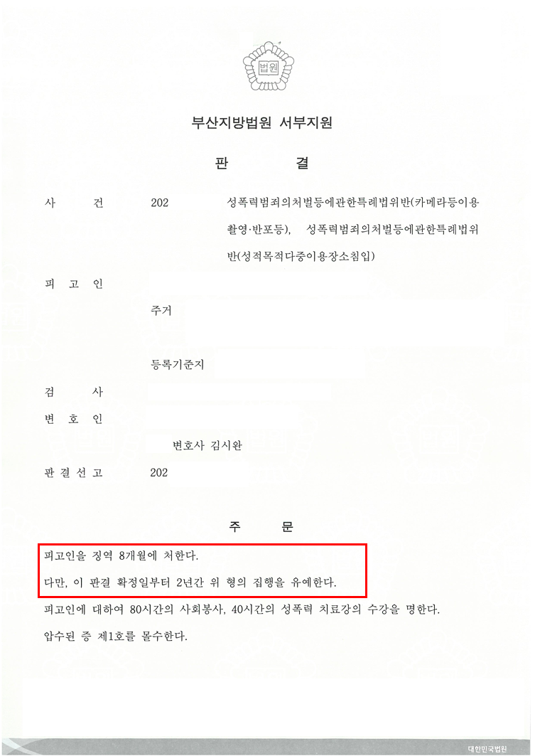"집행유예" 판결을 이끌어낼 수 있었습니다.