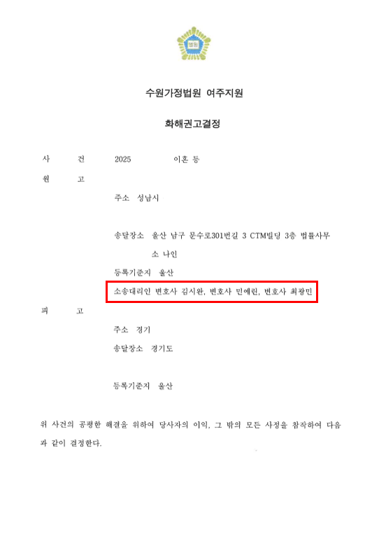 이혼소송 원고대리 화해권고결정 확정 빠른종결