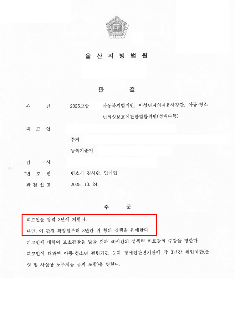 나아가 위 혐의 외에 아청법 위반(성매수) 및 아동복지법 위반 혐의까지 경합되면서 실형이 강하게 예상되었습니다.